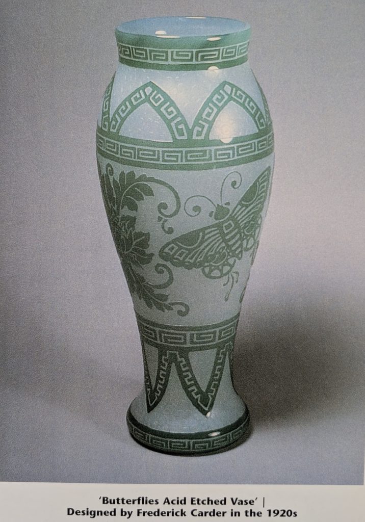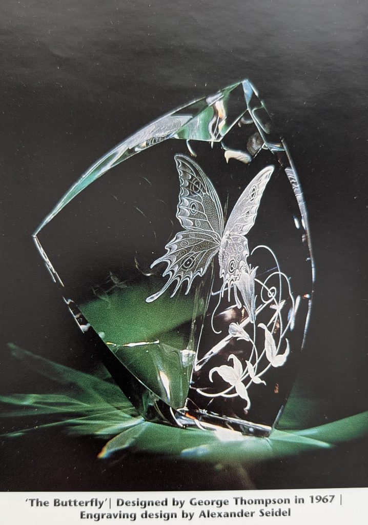 For this article, Tom Dimitroff selected “The Butterfly” as the representative piece from the Houghton era. In the years following Frederick Carder’s tenure, several Steuben designers continued to explore Carder’s fascination with butterflies. Notable examples from this period include Butterfly Girl, Moth and Flame, The Butterfly, Garden of Delight, and Butterflies Necklace.